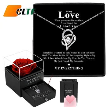 Flor de Rosa eterna giratoria flor de Rosa preservada en caja de acrílico caja de regalo de joyería Navidad boda regalo del Día de San Valentín 2025