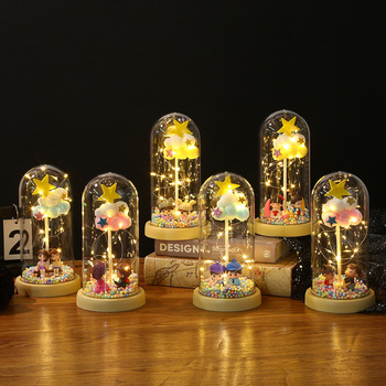 Romántica estrella flor Acrílico cubierta pareja escritorio decoración noche luz LED luz muñeca en acrílico cubierta cúpula regalos del Día de San Valentín