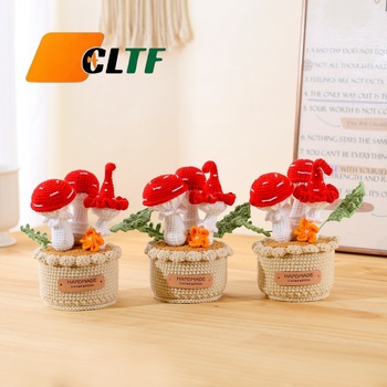 CLTF 2025 Novo Estilo de Decoração de Planta em Vaso de Cogumelo de Crochê Feita à Mão, Ornamento de Mesa de Escritório, Flor Eterna