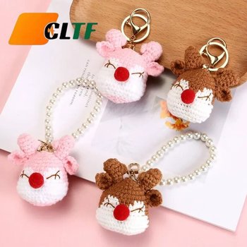 Handmade Crochet Christmas Deer Doll Knitted Polyester Ornament Christmas Party Decoration Bag Charm Handcraft Animals Keyring